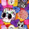 Halloween NBC Collage on Purple Polka dots Cotton Lycra