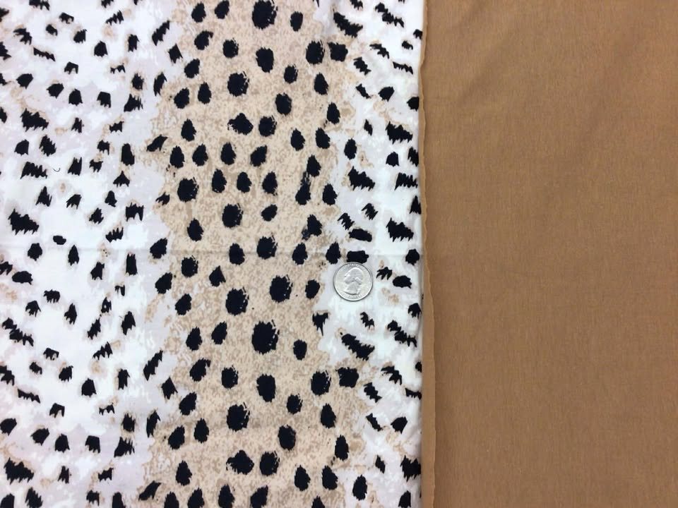 Bundle Includes: • 30″x60″ Black Leopard Spots on Cream & Taupe • 22″x60″ Dark Taupe (You may substitute another Cotton Lycra solid or stripe if preferred.)