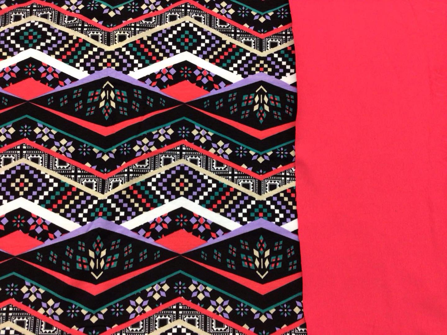 • 18″ x 60″ Bright Geometric Chevron • 18″ x 60″ Solid Salmon (or you can swap for a different solid if you prefer)