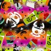 Halloween NBC Collage on Purple Polka dots Cotton Lycra
