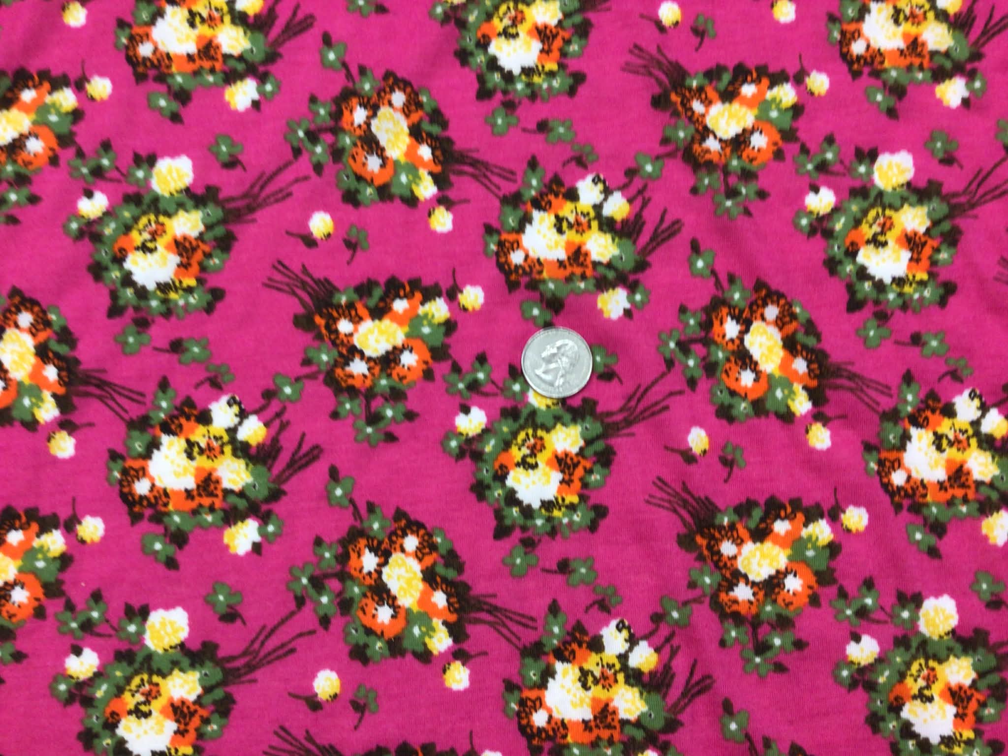 Cute Bouquets on Hot Pink Rayon Spandex – Fabric