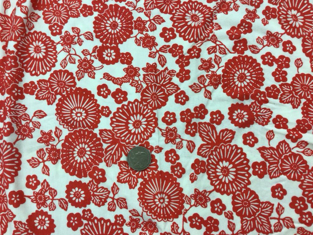 “Cute Red Flowers on White” light-weight, 2way stretch, 100% cotton jersey. This piece measures 33″ x 60″ wide.