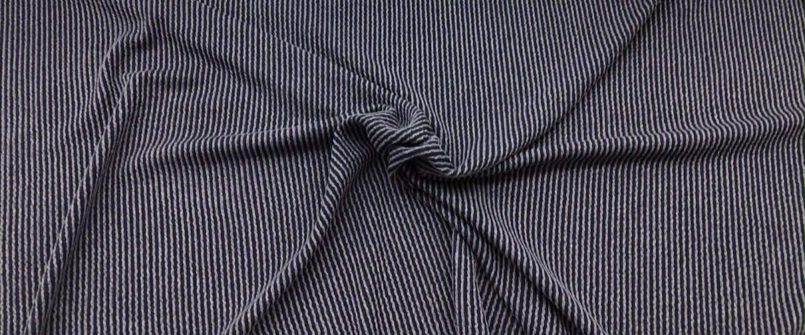 Denim Urban Rib 4-way stretch, 78% poly/19% rayon/3% spandex, 240 gsm.