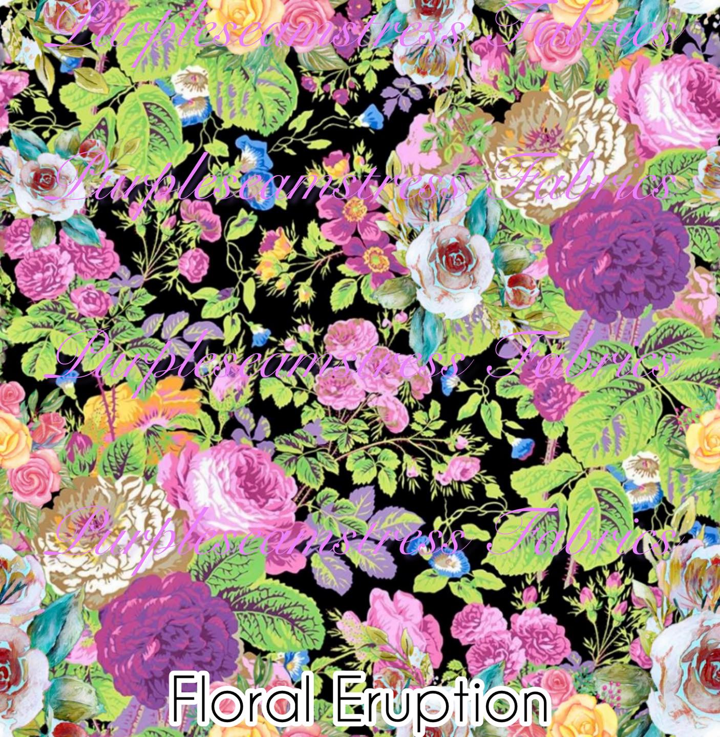 "Evelyn Roses" on Dark Red Cotton/Lycra