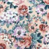 Golden Blooms on denim, medium weight, 4way stretch, double brushed poly spandex, 60” wide