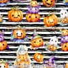 Halloween Scaredy Cats on watercolor Stripes Cotton Lycra