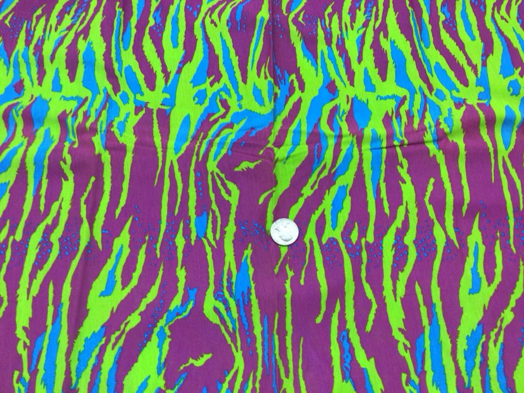 “Lime/Purple/Aqua Zebra” medium-weight, 2way stretch, 100% cotton jersey, 60″ wide.