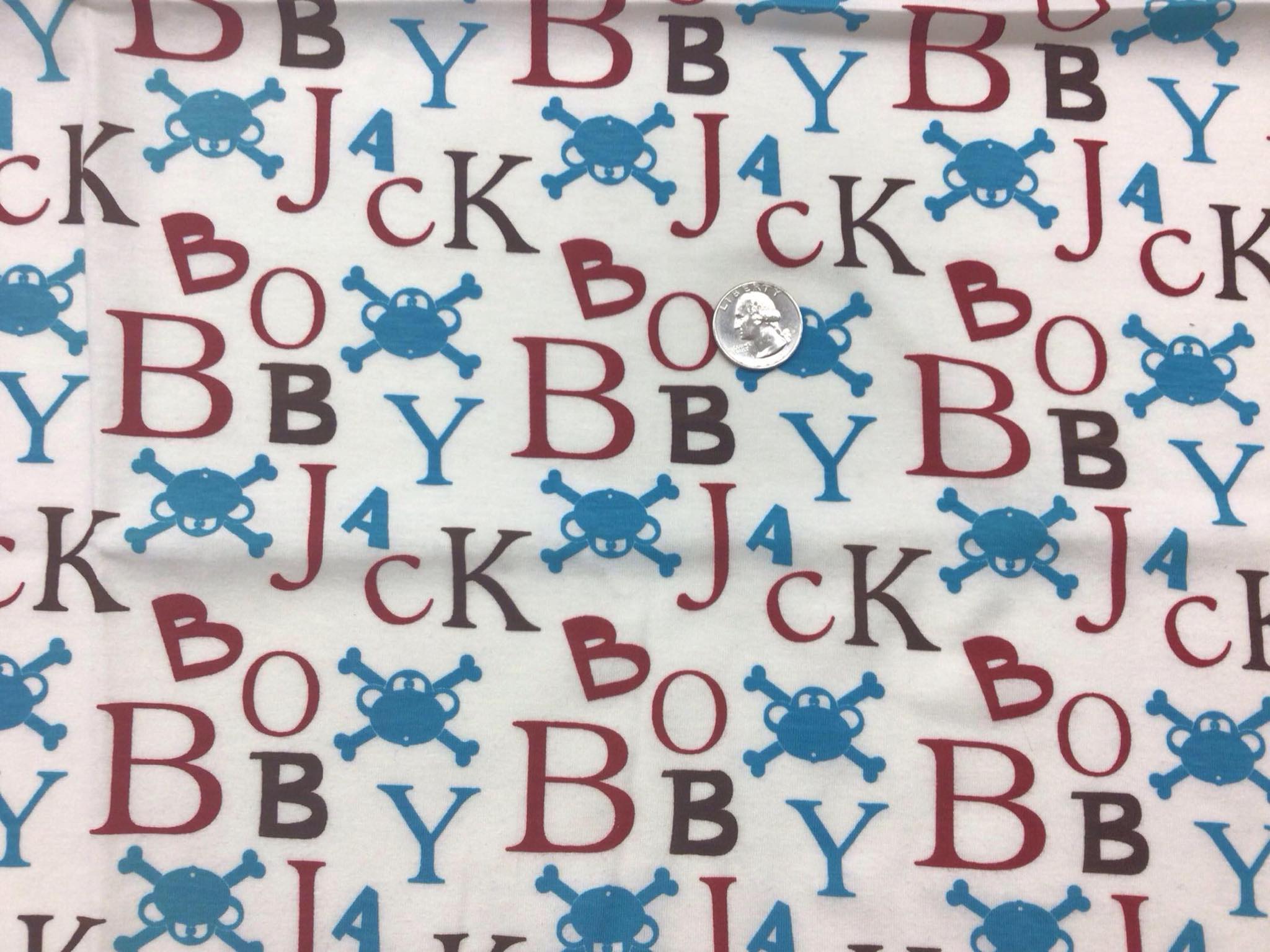 “Monkey Jack” medium-weight, 2way stretch, 100% Cotton jersey, 60″ wide.