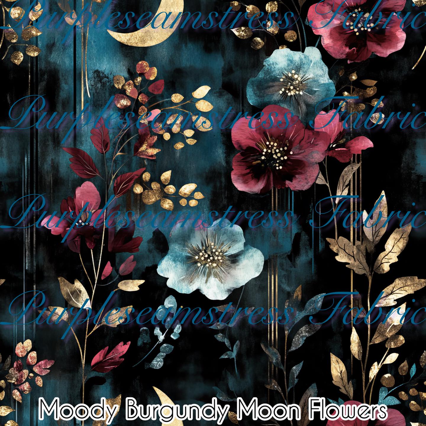 Moody Burgundy Moon Flowers – Fabric