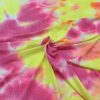 Rainbow Sherbet Tie-dye WAFFLE, med-weight, 4way stretch, 95 poly/5 spandex, 230 GSM, 60 wide. This coordinates with my turquoise, lime cotton/lycra, 60″ wide.
