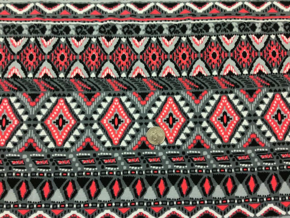 Red/Grey Geometric Ponte – Fabric