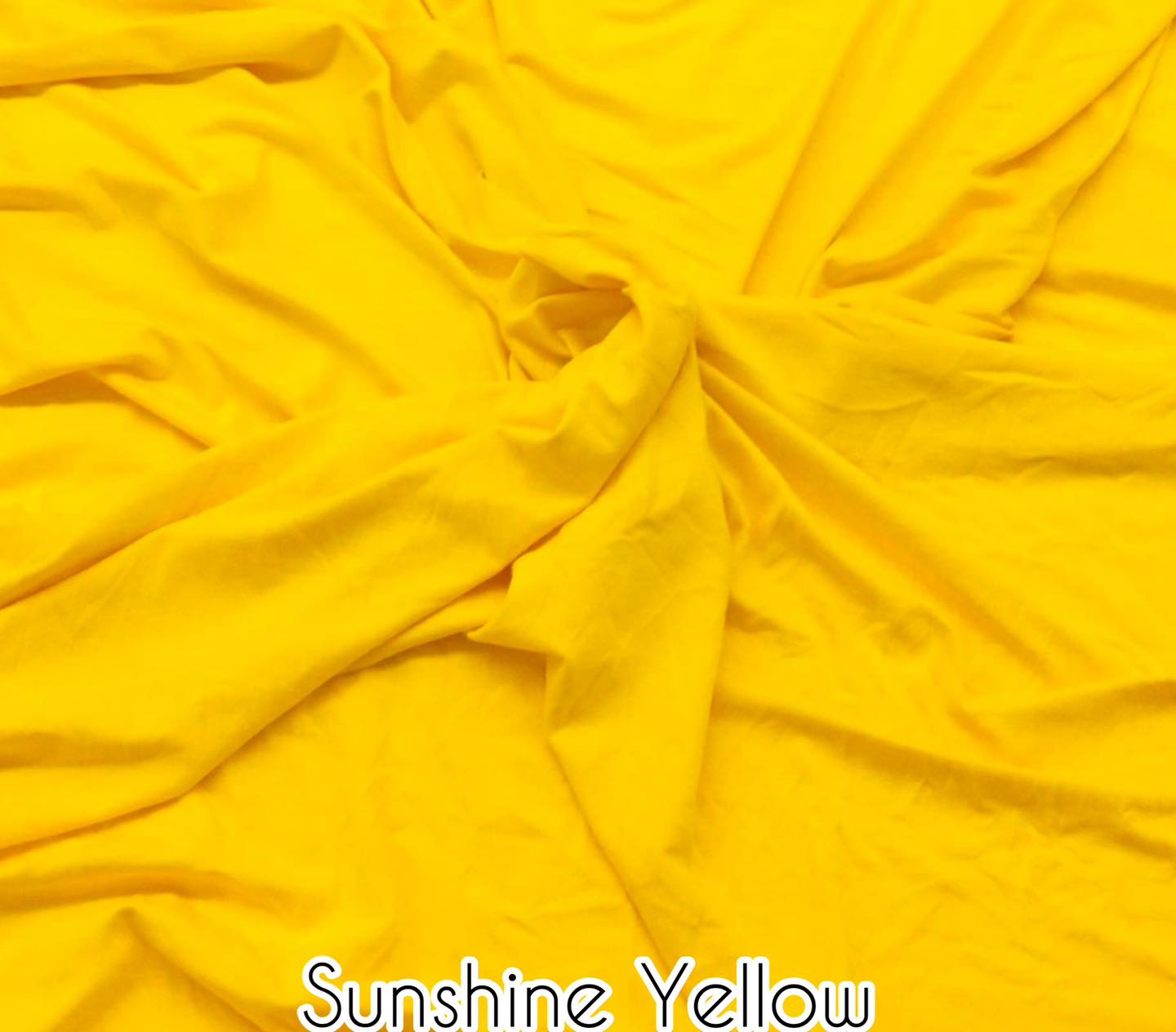 Solid Sunshine Yellow Modal, 65% rayon/30% modal/5% spandex, 190 gsm, 60″ wide.