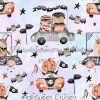 Halloween NBC Collage on Purple Polka dots Cotton Lycra