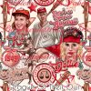 "Evelyn Roses" on Dark Red Cotton/Lycra