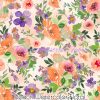 Watercolor Mid-Summer Roses on Yellow Cotton Lycra