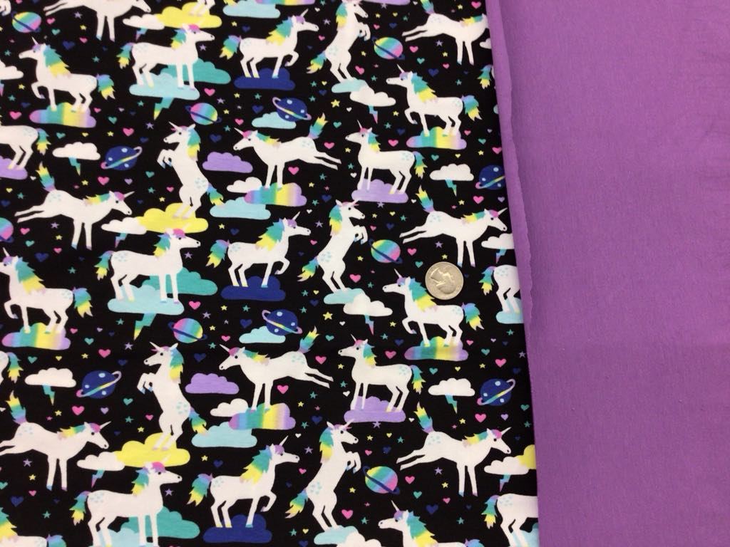 • 21″ x 60″ Unicorns in Space on Black 🦄✨ – medium-weight, 4-way stretch, cotton lycra