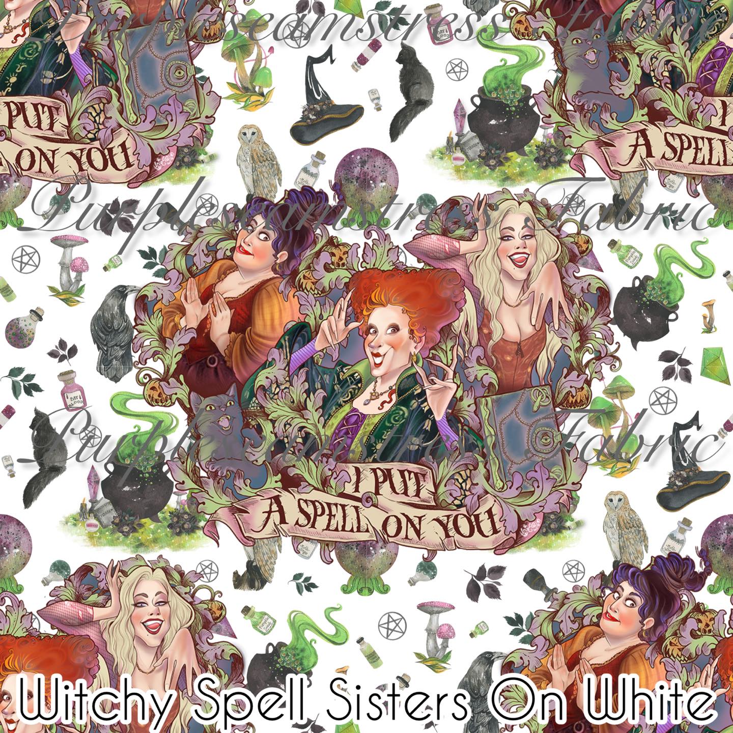 Witchy Spell Sisters on White – Fabric